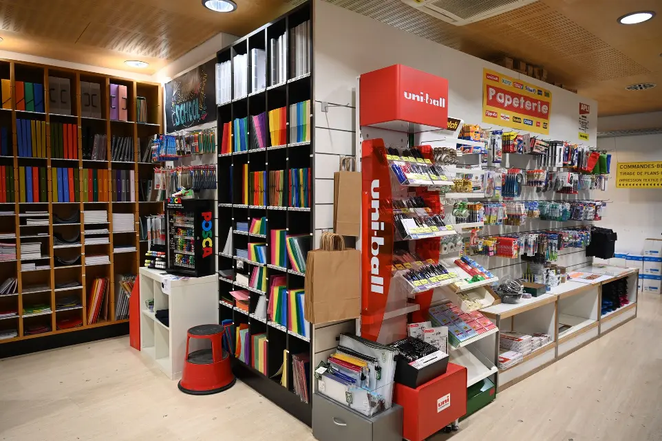 Dans notre papeterie, vous trouverez un large assortiment de papiers, enveloppes, bics, crayons, classeurs, fardes, matériel scolaire et tous les petits outils indispensables en bureautique.