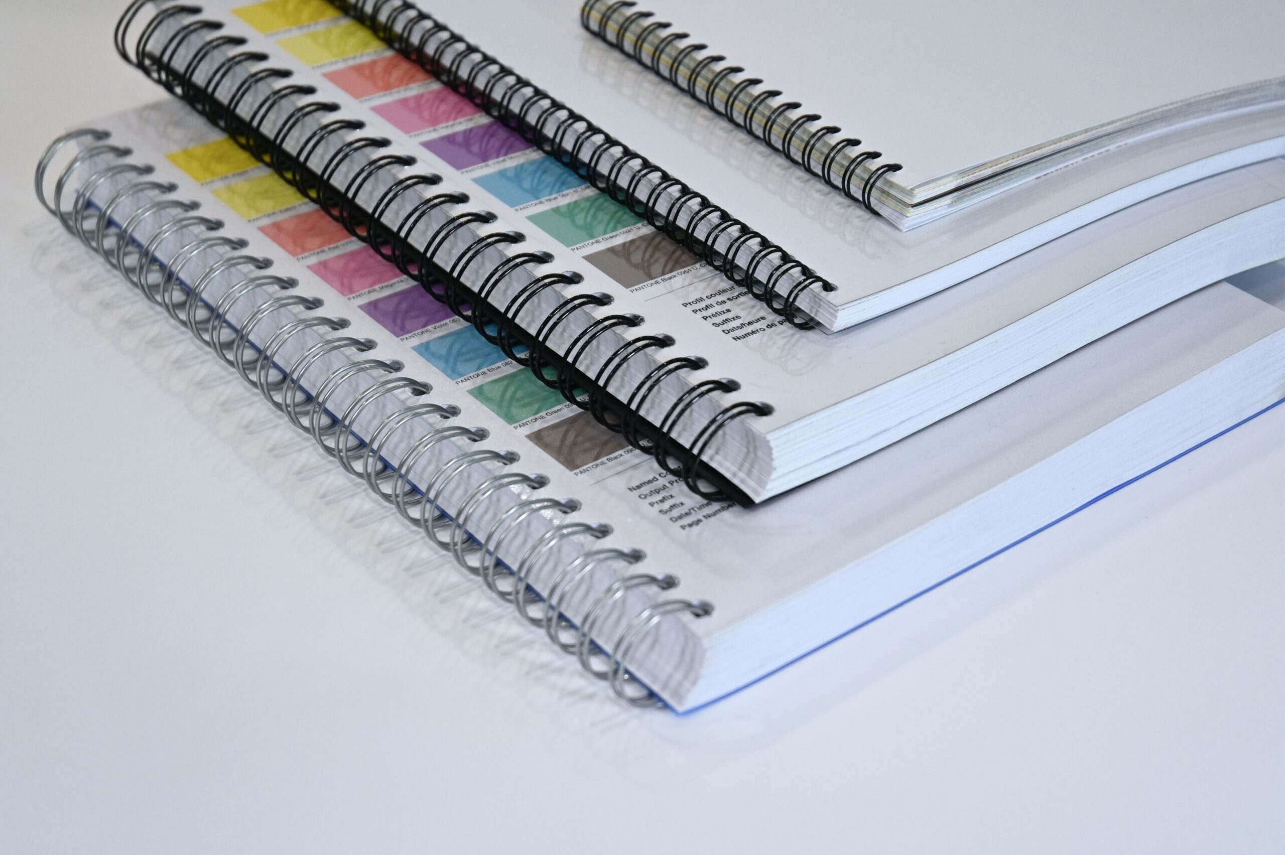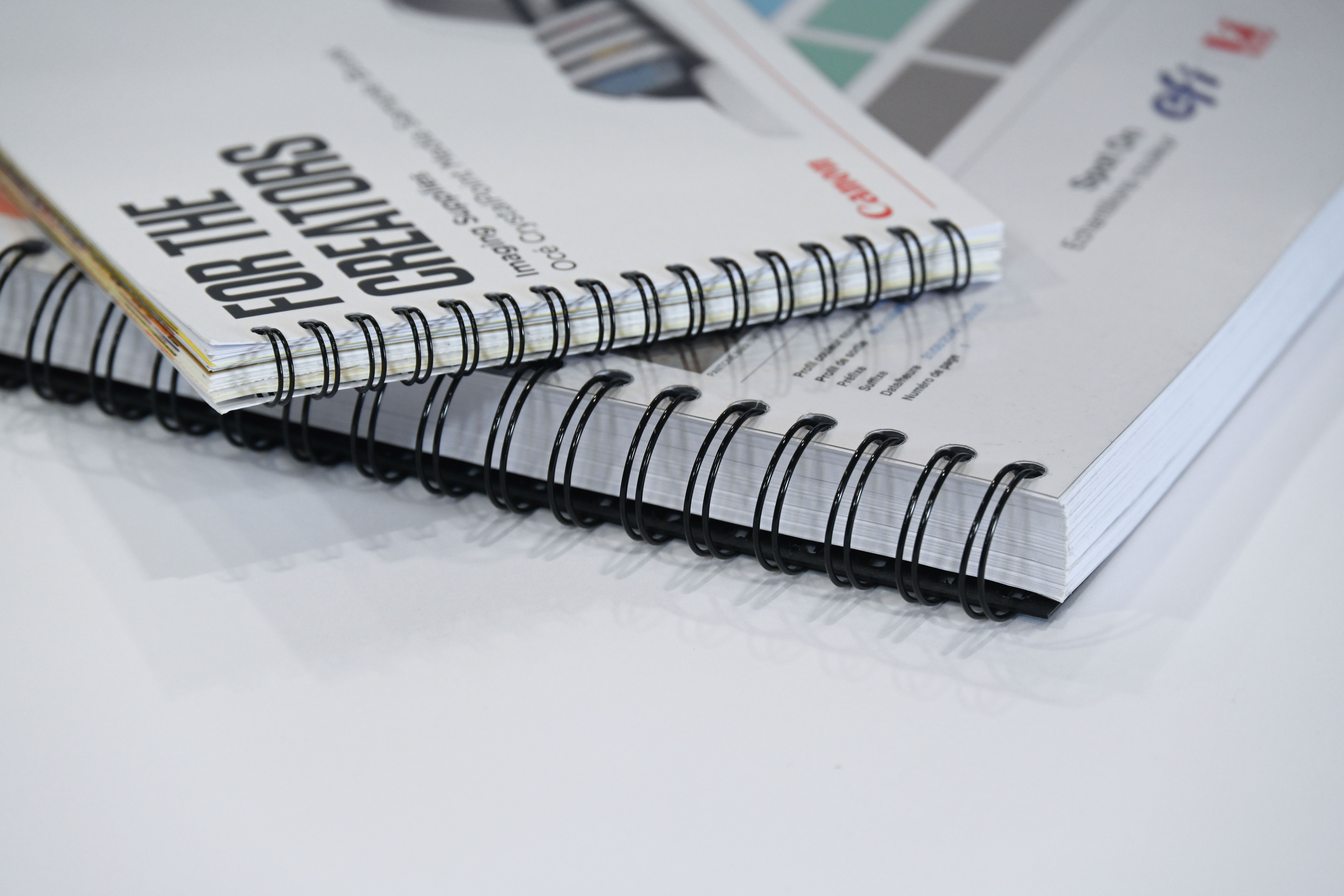 Les spirales peuvent être coupées à la dimension du document. La longueur maximum est de 30cm donc un document A3 sera toujours relié sur le petit côté de la feuille.